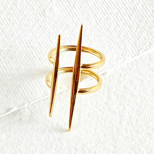 18kt Plated Barbed Gold Spike Ring Handmade Adjustable