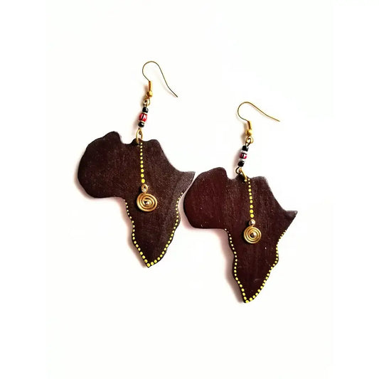 Mbao Wooden Continent Earrings