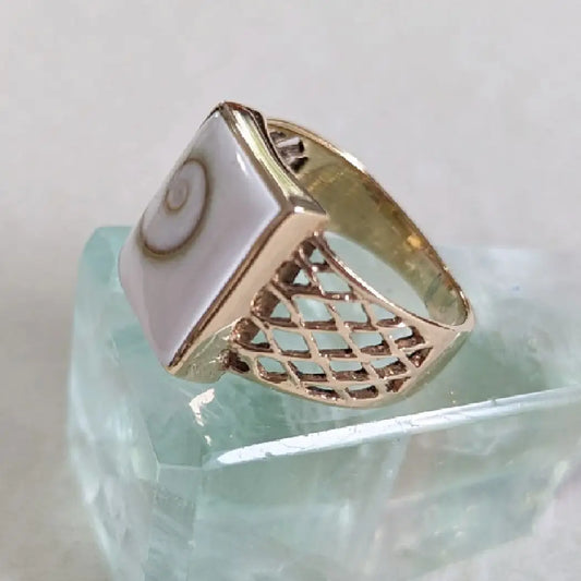 Mermaid Shiva Shell & Brass Lattice Ring