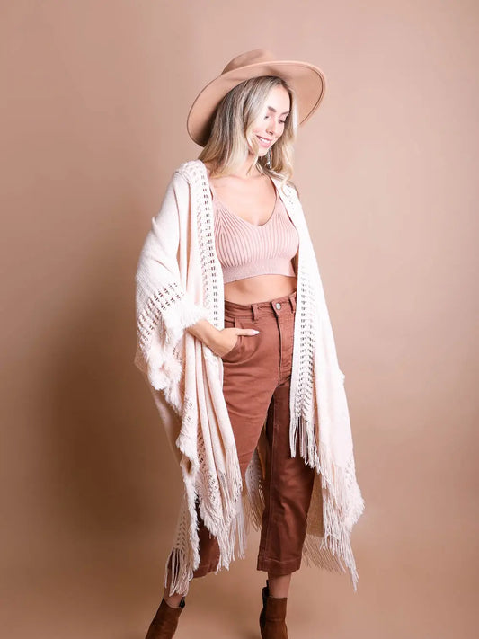 Open Work Bohemian Ruana (Lilac Gray, Cream, Rust)