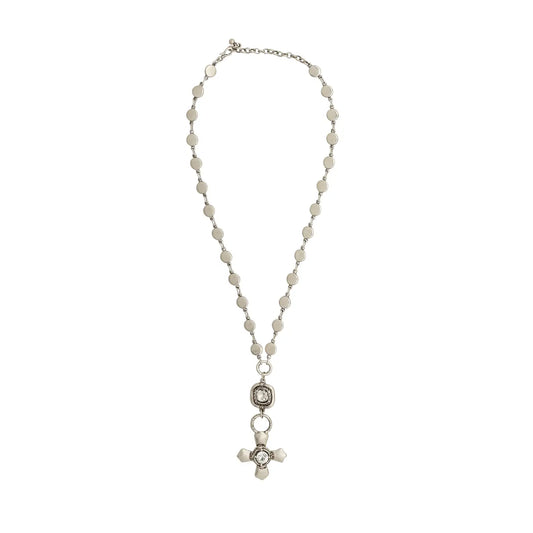 Pewter & Crystal Cross Necklace