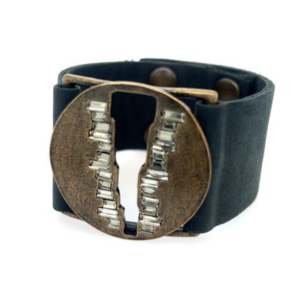 Black Leather Rough Cut Black Diamond Cuff