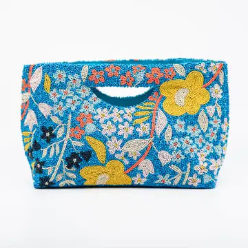 Blue and Yellow Floral Beaded Purse