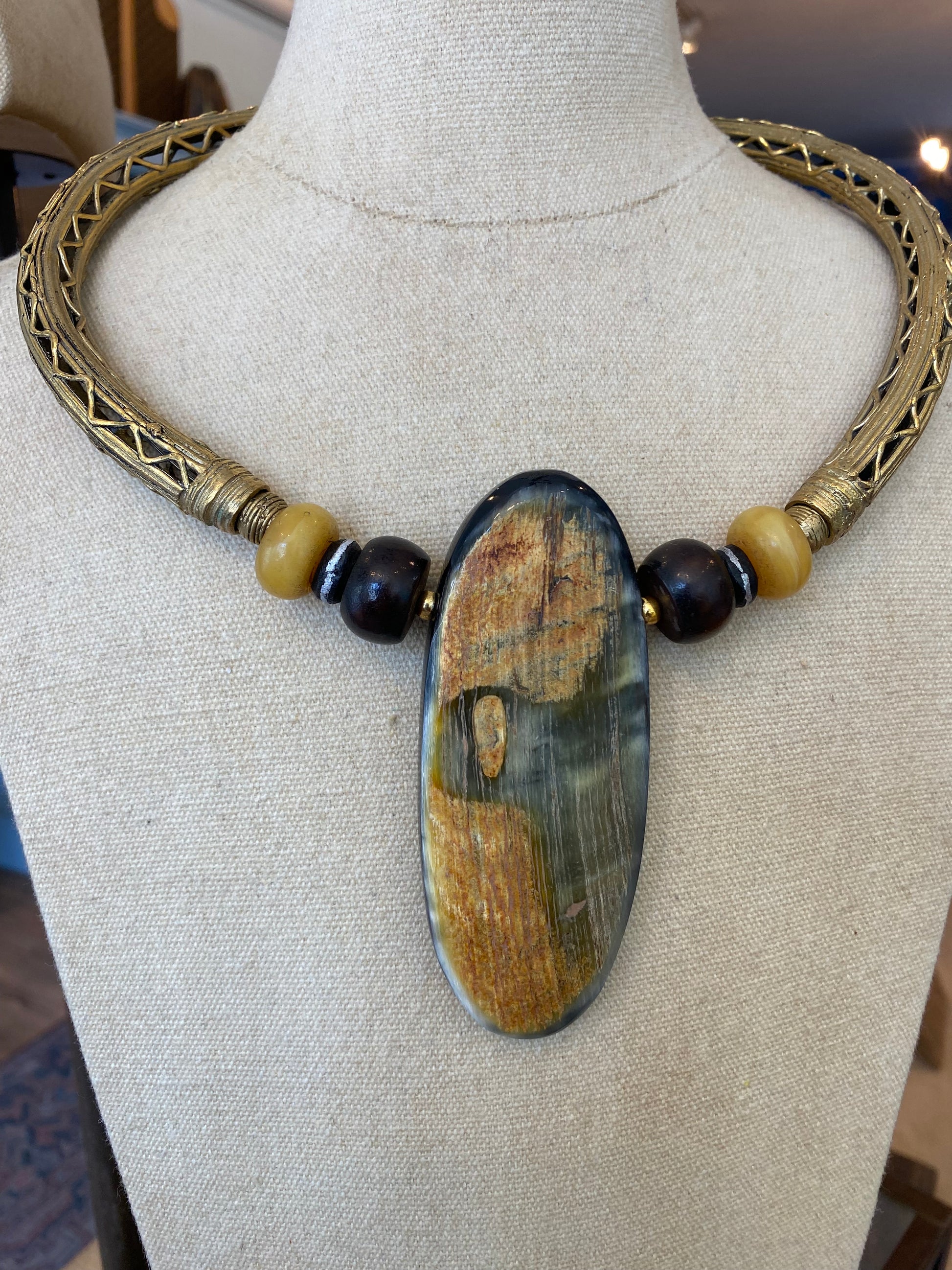 Brass and Bone Oval Pendant Ghanaian Necklace