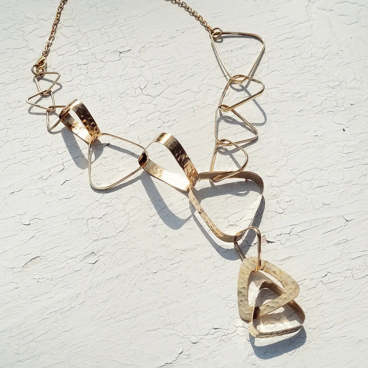 Brass Chain Link Necklace Geometric Abstract Handmade- Abstract