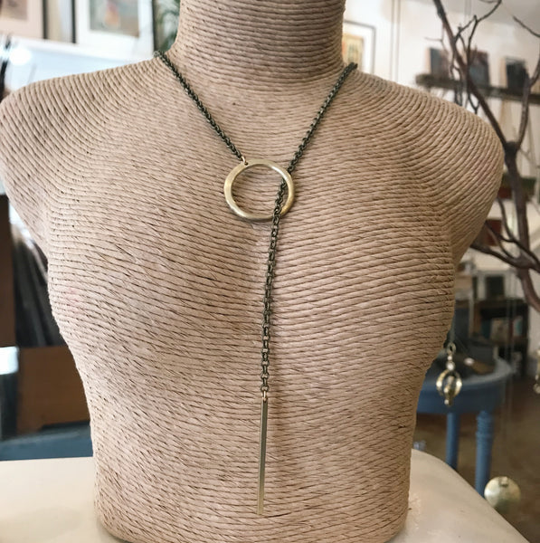 Simple and hip, this handmade brass and sterling necklace can be worn with any style. Great for layering sterling or brass chokers. Handmade in USA. Woman owned.