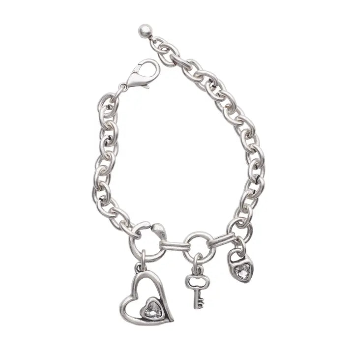 Handmade Heart Crystal Pewter Bracelet