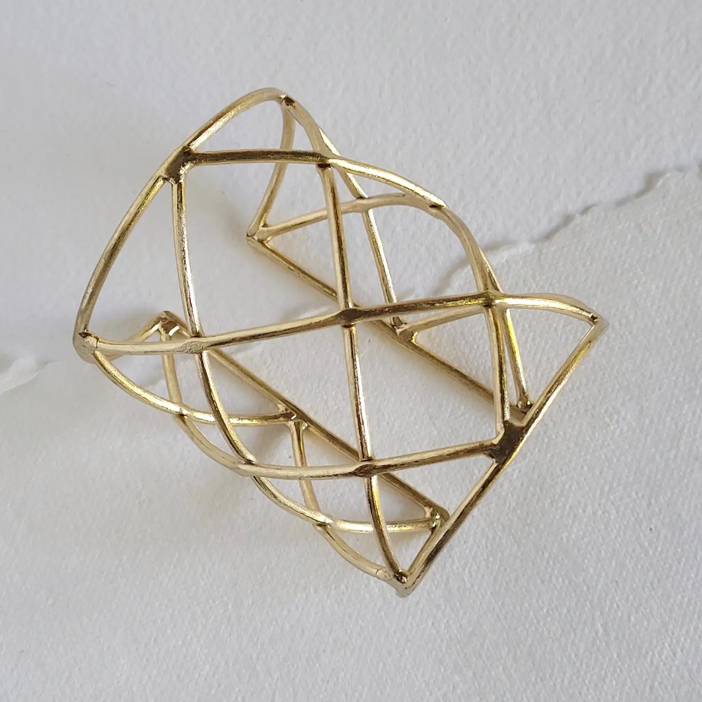 Solid brass handcrafted Lattice cuff bracelet. Please allow for the human touch. These are individually crafted and variations will occur. Adjustable by squeezing.