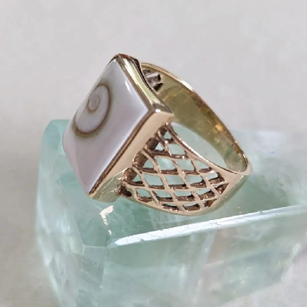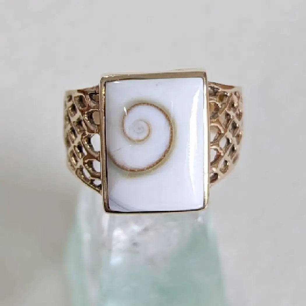Operculum of the shell swirls in and out in a fluid swirl. The shell is named after the Hindu God, Shiva, the shell represents the Third Eye found in many depictions of the God. Folklore suggests Shiva Eye Shells are “Mermaids' Money” and good luck to travelers and fishermen.