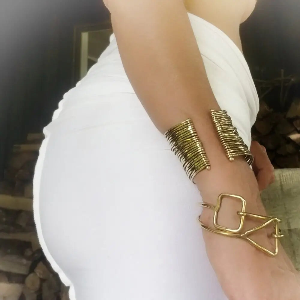 Multi Layered Brass Wire Cuff Bracelet (Silver & Gold)