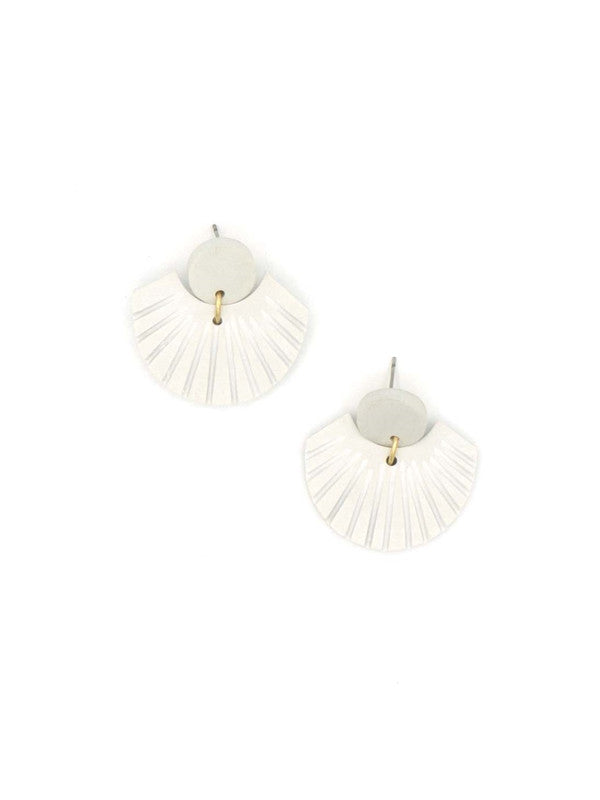 These modern and trendy white clay studs will match literally anything in your closet, so you can add these fun textured earrings to any outfit without a second thought. Earrings measure 1.25". Made from brass-plated recycled metal and clay. Nickel-free.