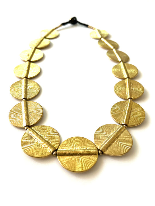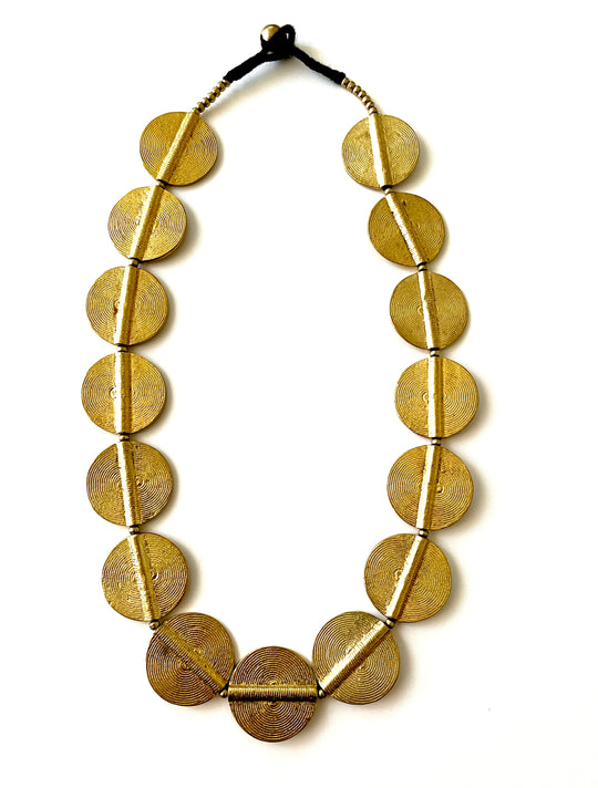 Hands down one of our most popular necklaces this Sheba necklace is made with brass, boasting a coin like design and intricate pattern. This stunning choker is both stylish and comfortable, perfect for any occasion. Featuring excellent craftsmanship, you'll love this unique piece of jewelry. 19 inches in length. Handmade by artisans in India. Limited quantities left.