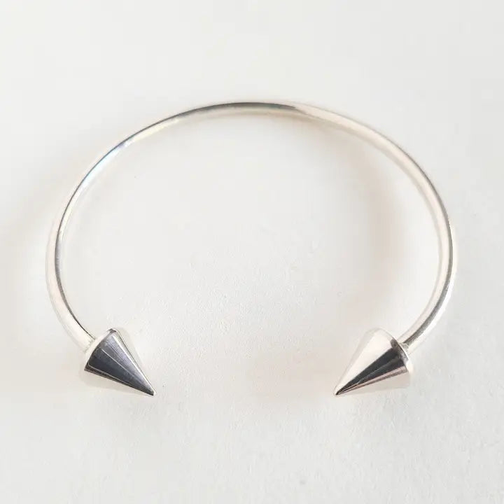 Solid brass silver plated brass bangle cuff bracelet. Great stacking bracelet. Spike screws off to add charms.