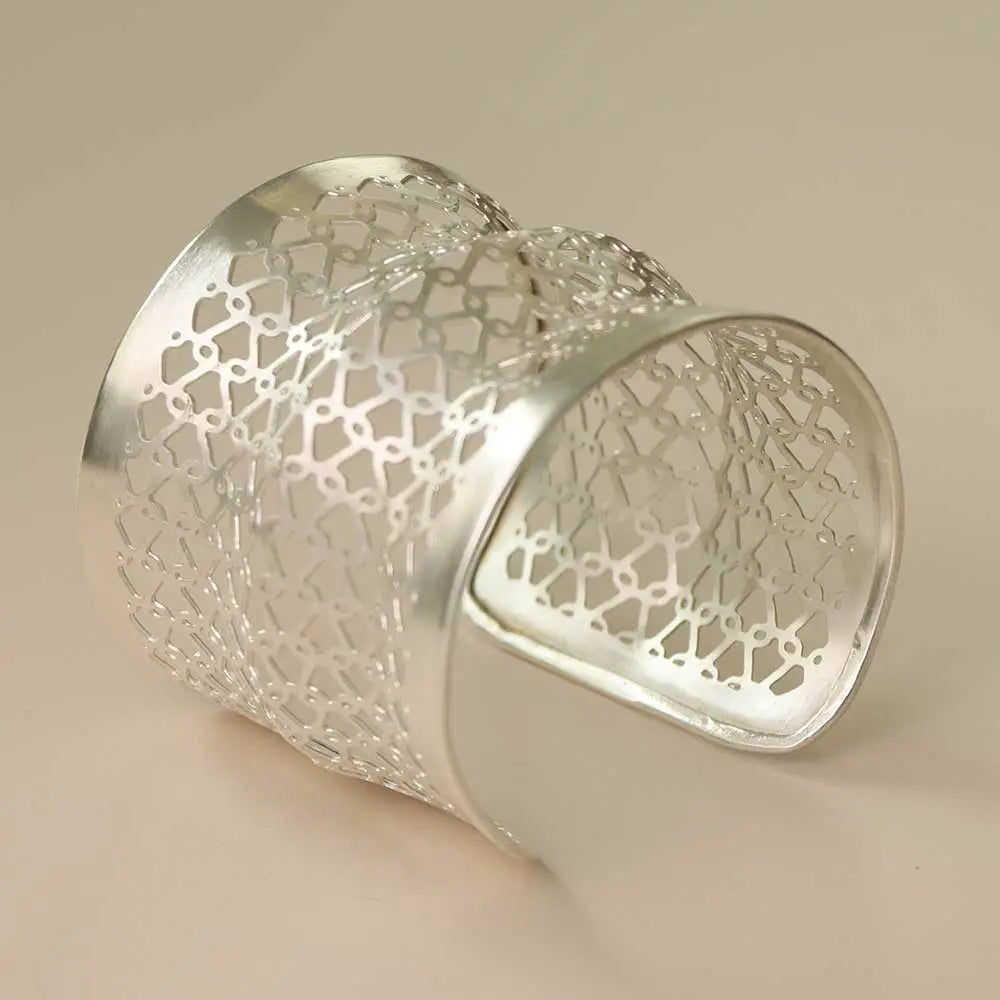 Silver-Tone Geometric Lattice Wide Cuff