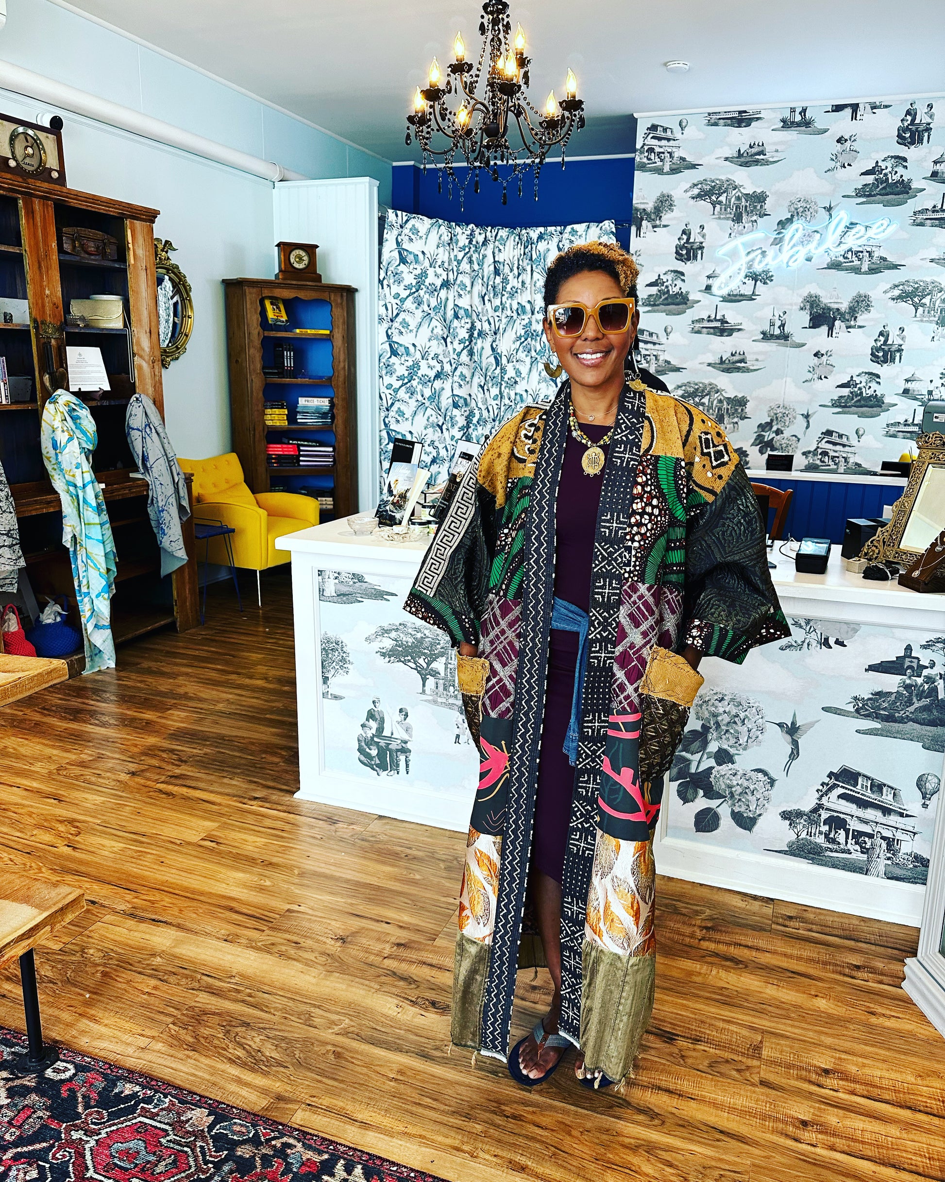 The wallpaper, originally designed to hang in the hotels of the Inkwell Haven, featured two of her historic hotel properties highlighting the unique and powerful presence of the African American summer community. The wall mural debuted in Jubilee with the 2023 launch of her store on Circuit Avenue.