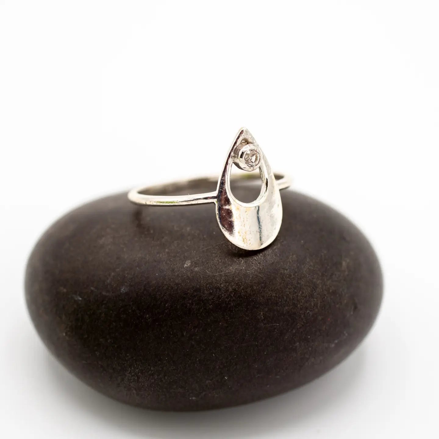 Sterling Silver Crystal Droplet Ring, available in sizes 5-9.