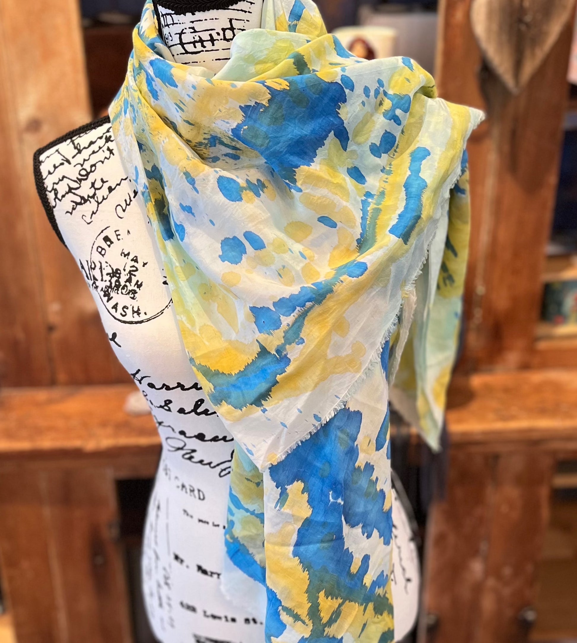 Martha Mae Hand Painted Blue & Yellow Scarf