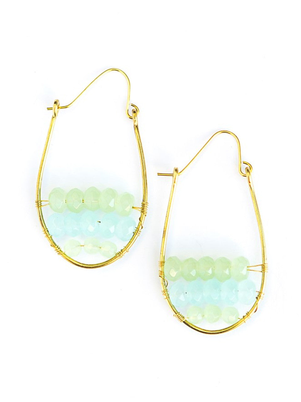These stunning pastel green beaded hoop earrings remind us of the slow waves rolling in from the ocean. Handmade with love by fair trade artisans in Chimbote, Peru.