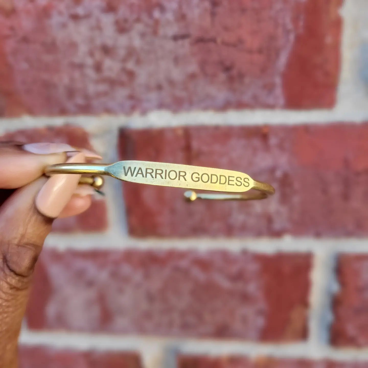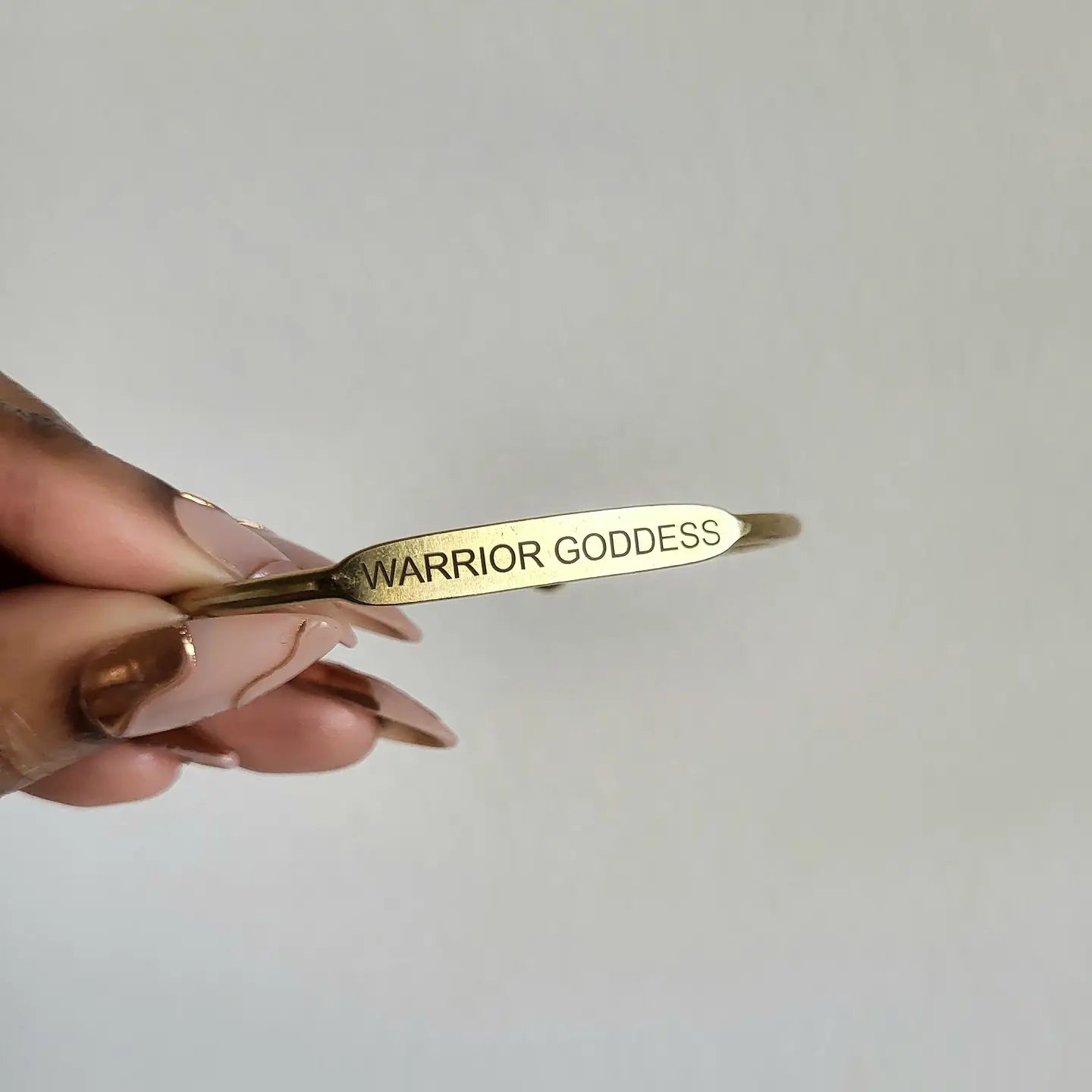 Warrior Goddess Affirmation Bangle Created from 100% Raw Brass, created to last a lifetime. Adjustable and flexible opening.